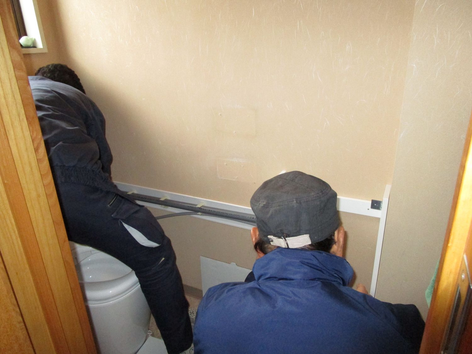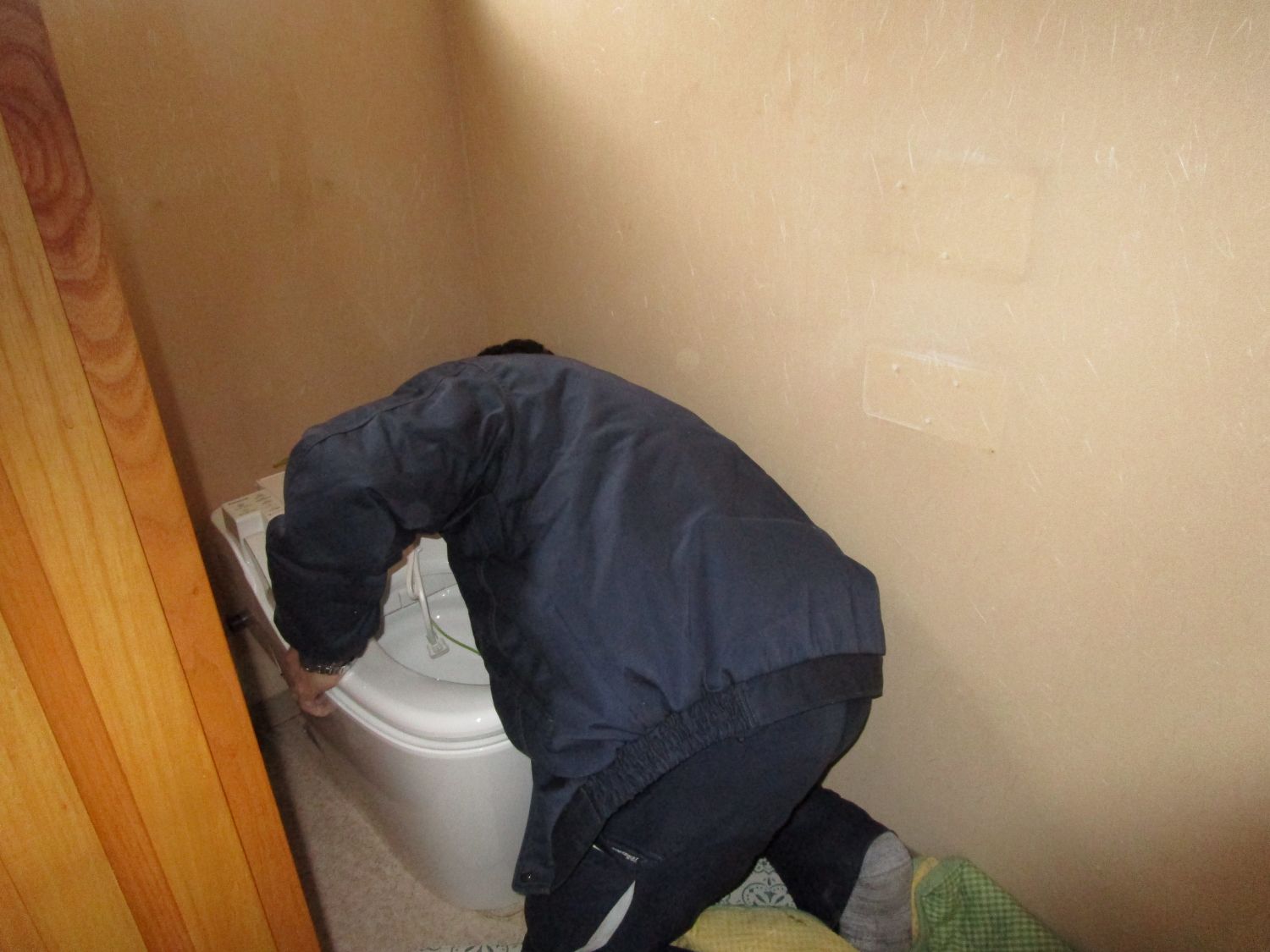 古い便器を取り外し、新しい便器や手洗いを設置します。