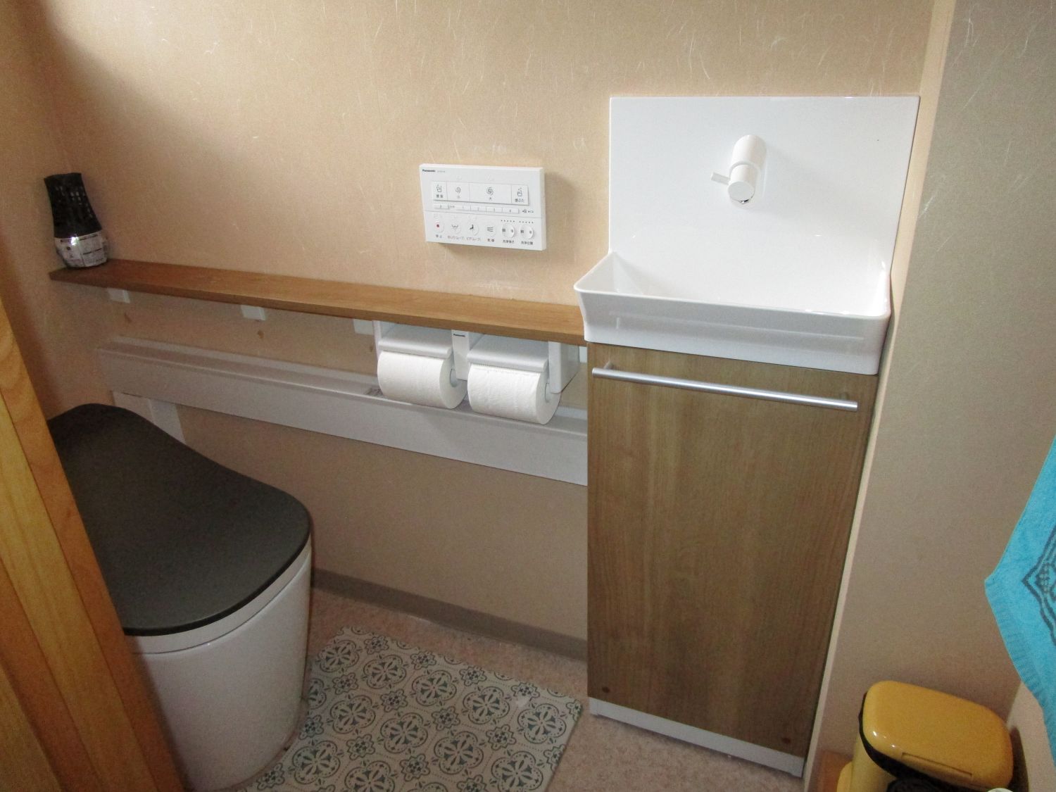 トイレ本体に加え、手洗い器・手すりも設置し、快適で使いやすい空間に仕上がりました🙂😊