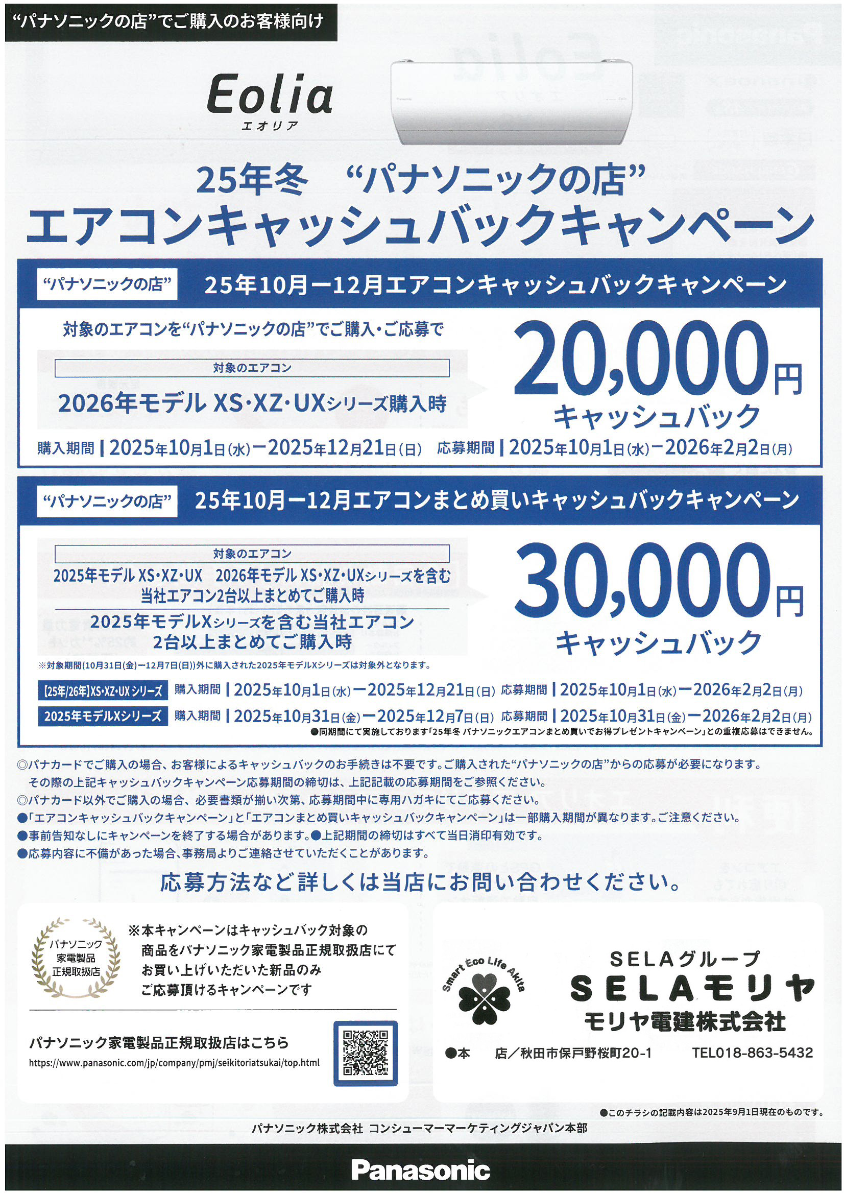 25年冬「パナソニックの店」エアコンキャッシュバックキャンペーンのお知らせ